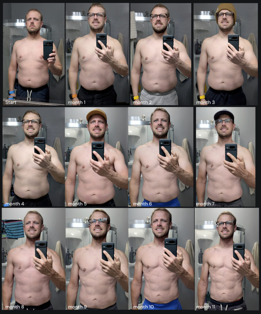 “In past years that I’ve been on a cut, typically I start around New Year’s and get down to 150s in the fall. Then my hunger levels seem to elevate, and I end up gaining back the 30 lbs by New Year’s. Rinse and repeat. So this is kinda a pivotal moment for me, I guess.”